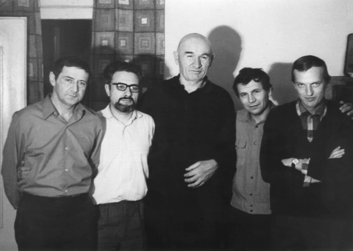 Петро Григоренко (у центрі) й четверо харків’ян, які отримали по 3 роки за підписання листа на його захист: Аркадій Левін, Генріх Алтунян, Владислав Недобра та Володимир Пономарьов.