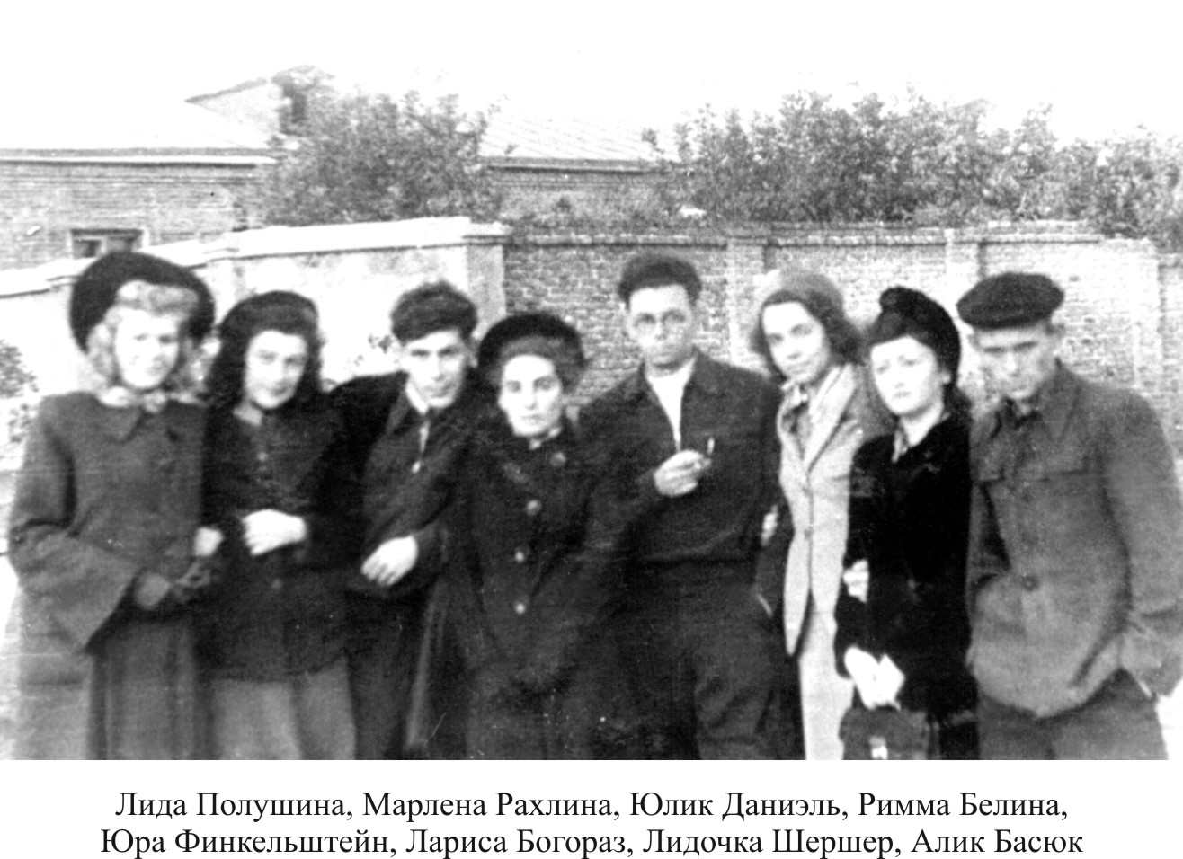 Познакомилась я с Юликом осенью 1946 г., когда он поступил в Харьковский университет. Юлик был мой ровесник, но наши мальчики демобилизовывались из армии и потому опаздывали с учебой, проведя эти годы на фронтах. К тому же, по каким-то обстоятельствам москвич Юлик поступил именно в Харьковский университет. Через год он перевелся в Москву (к матери), но завязавшаяся между нами дружба осталась на всю жизнь, как было у него и с другими людьми. Я уже рассказывала, что у нас сложилась такая группа (с разных курсов), которую опекала и которой всячески помогала встречаться Вера Алексеевна Пычко, которая заведовала у нас кабинетом зарубежной литературы. Ребята, вошедшие в эту группу (попросту говоря, компанию), все были очень яркие, каждый отличался каким-нибудь талантом. Все наши мальчики, кроме «младших» по возрасту, которых было двое, были фронтовики. Юлик еще и после тяжелого ранения.